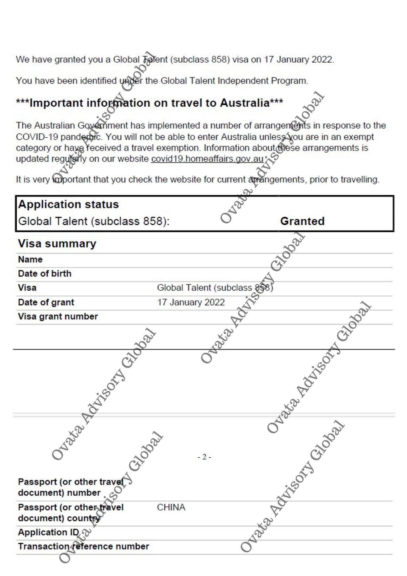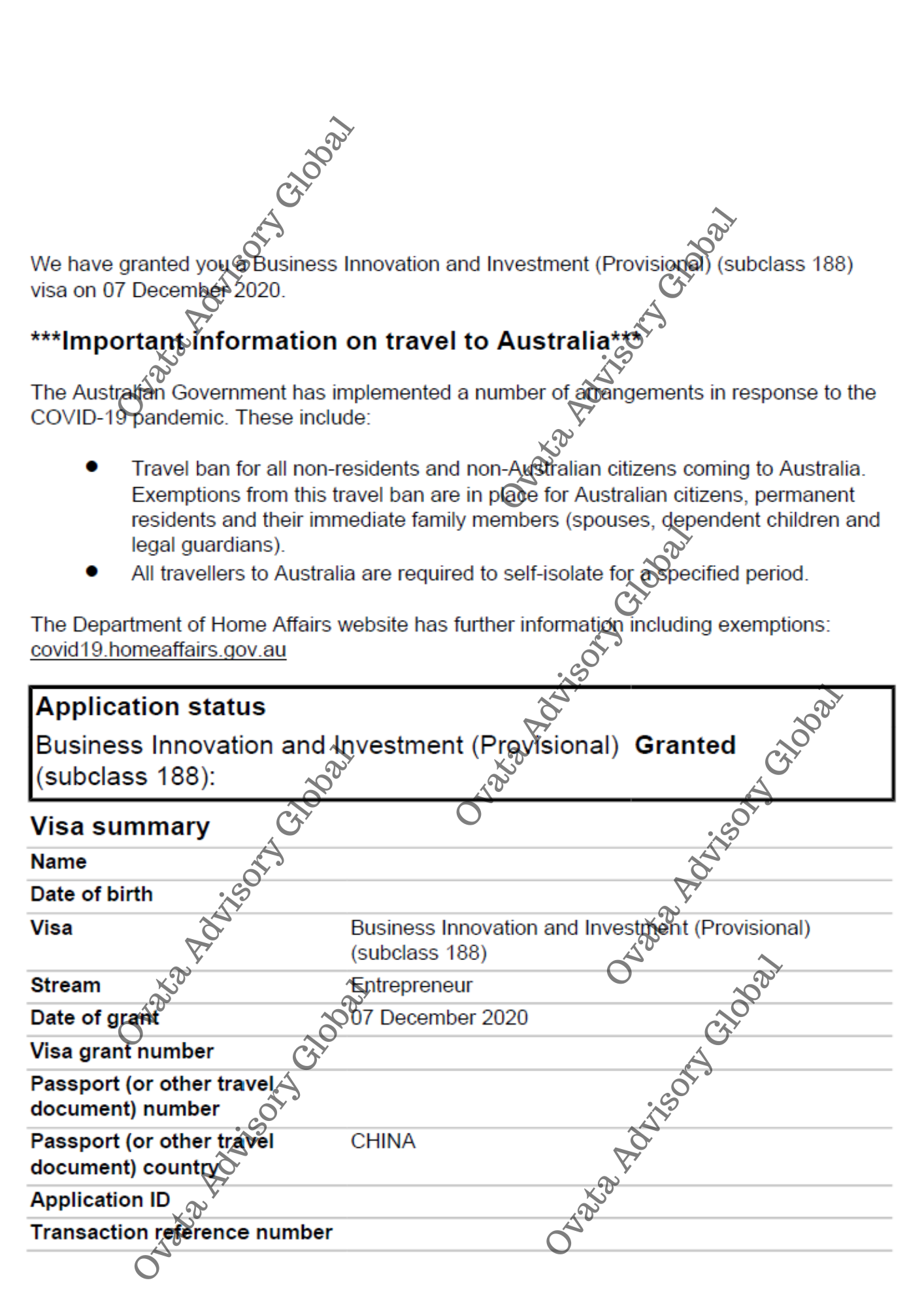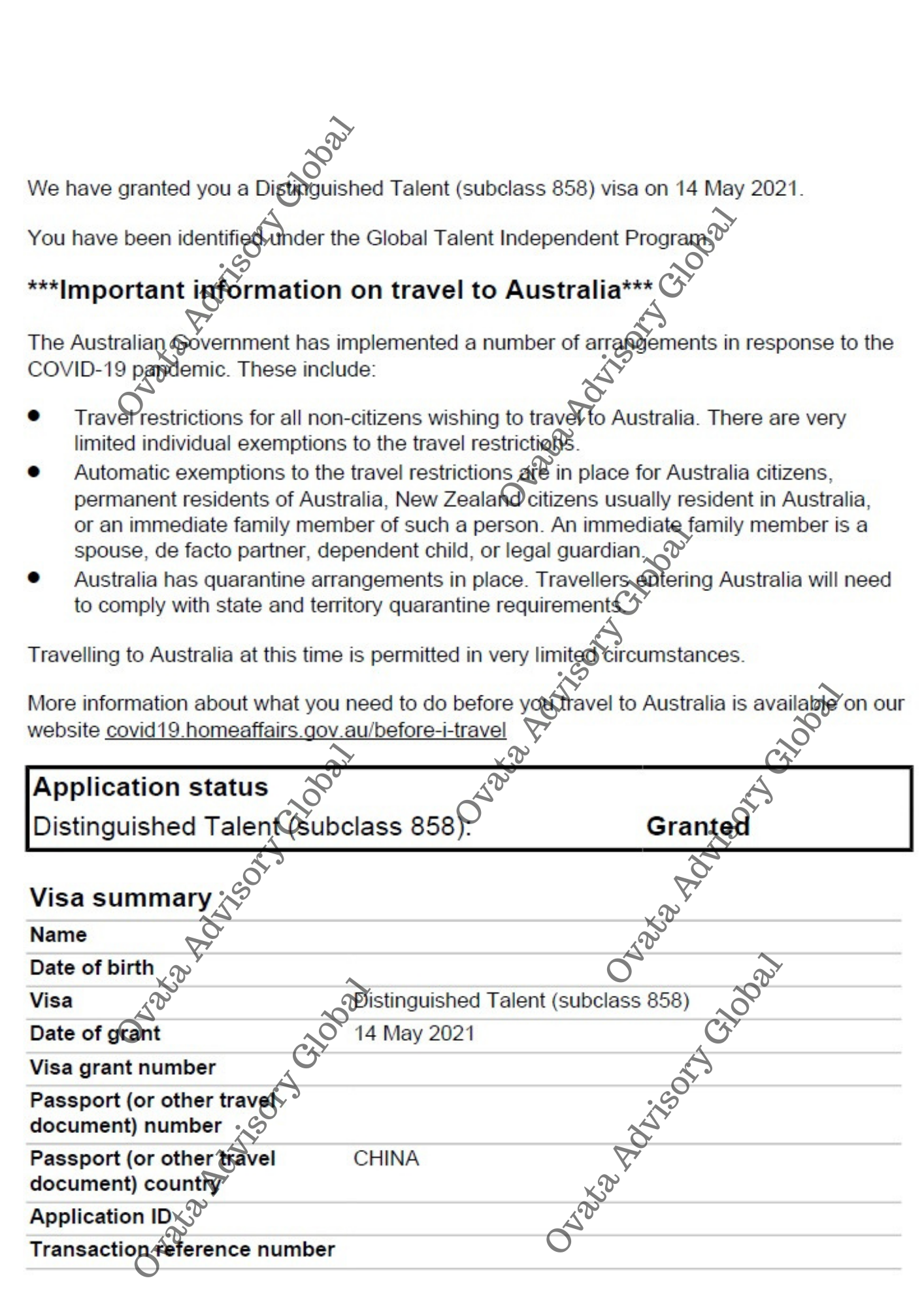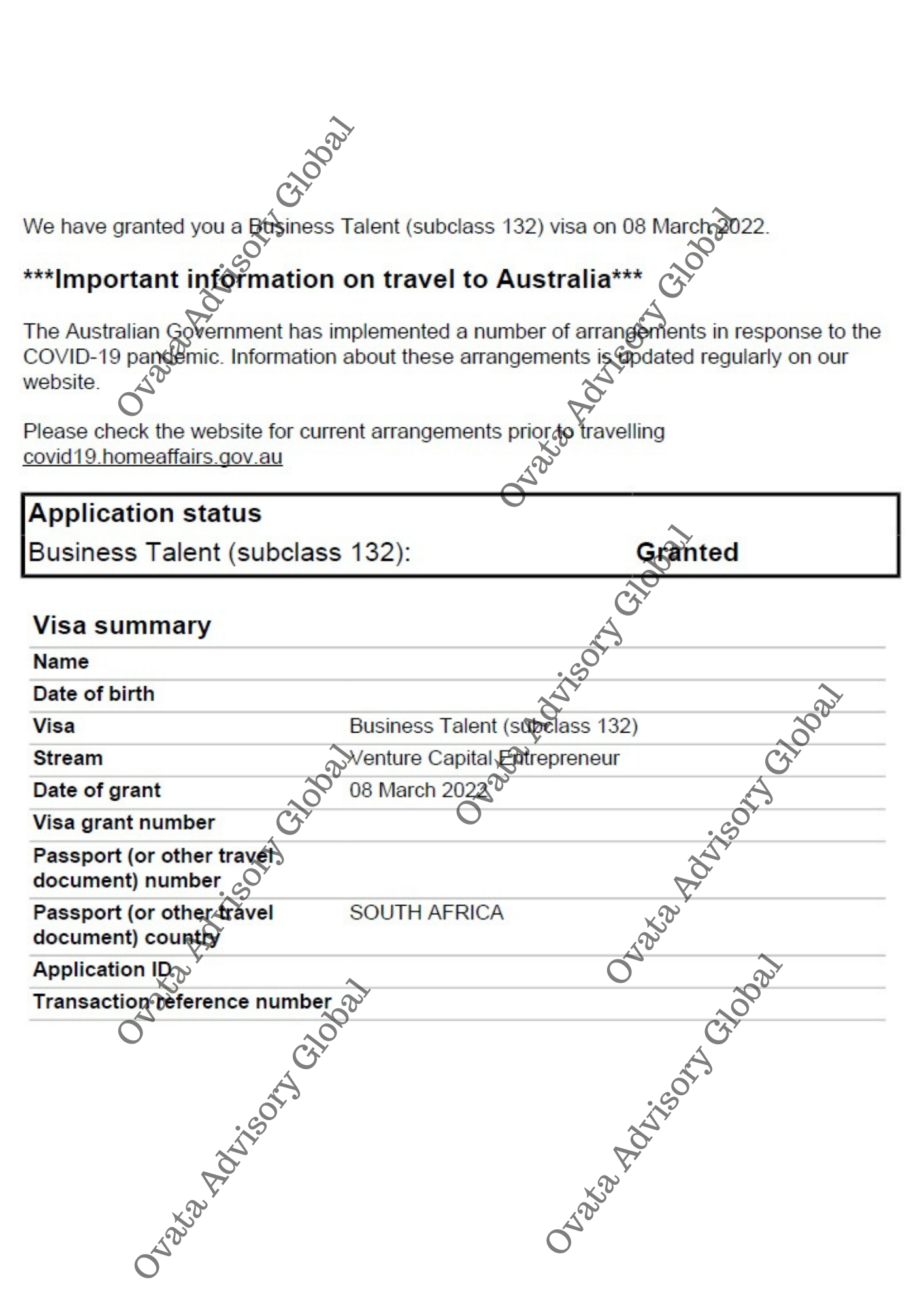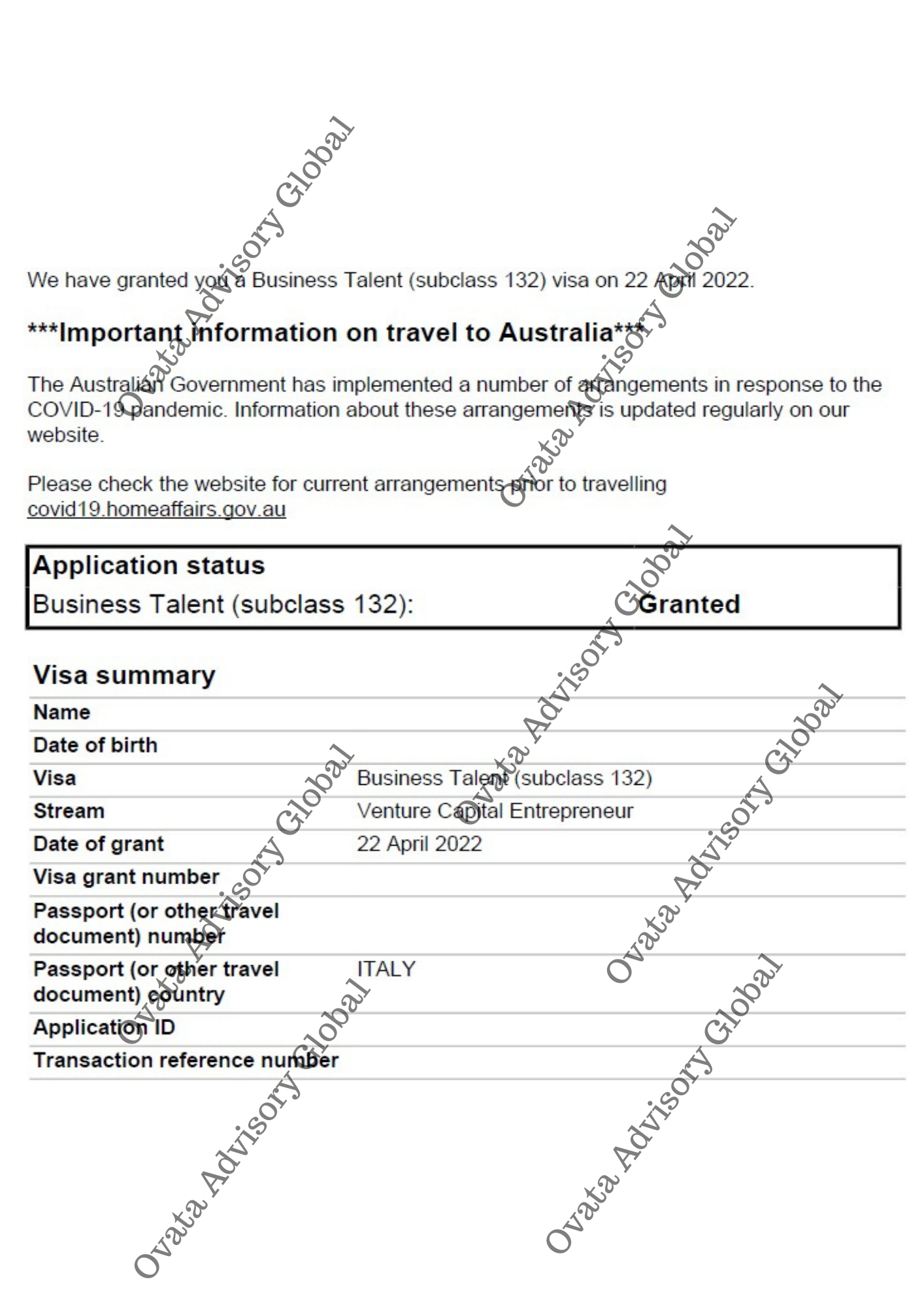 Use of this website does not constitute an agent-client relationship. The Client understands that the grant of any visa or Permanent Residency is at the sole discretion of the respective government. Ovata Advisory and its partners do not guarantee a successful outcome. However, we will use our best professional efforts to further your migration journey.
